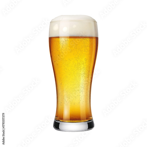 Refreshing Cold Beer Served in a Tall Glass With Frothy Foam on Top on transparent