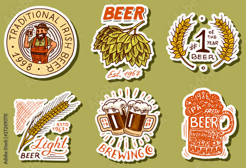 Retro Bavarian beer stickers. Alcoholic Label with calligraphic elements. Vintage American frame for poster banner. Cheers toast. Hand drawn engraved sketch lettering for web, pub menu.