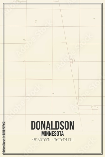 Retro US city map of Donaldson, Minnesota. Vintage street map.