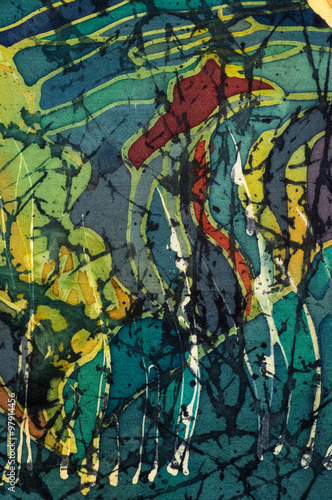 Rice terraces, fragment, hot batik, handmade art, silk, background texture