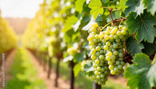 Ripening grapes glistening in sunlight, vineyard harvest season
