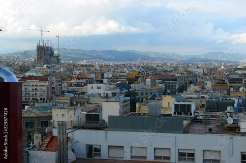 Rooftops and view of commercial and residential buildings in Barcelona Spain