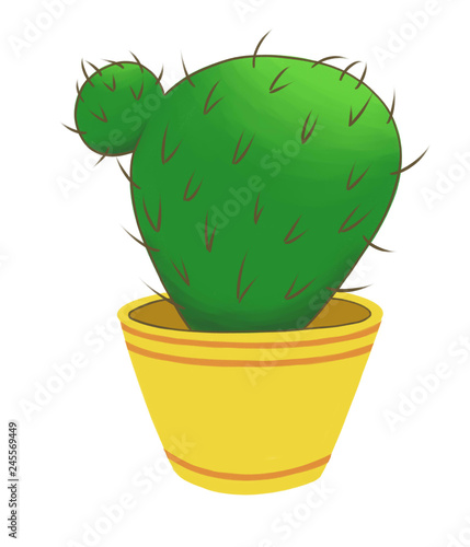 Round spiny cactus in a yellow pot