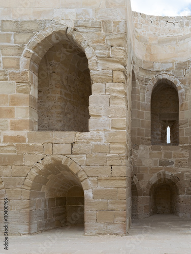 Ruins of old wall with arched cavities at the citadel of Alexandria, Egypt