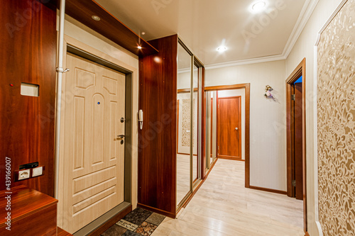 Russia, Moscow- May 29, 2020: interior room apartment modern bright cozy atmosphere. general cleaning, home decoration, room doors, renovation corridor lobby entrance hall