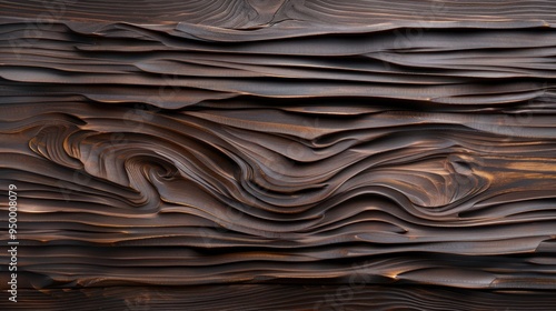 Rustic Dark Wood Texture, A richly layered three-dimensional dark wooden surface, showcasing deep grains and knots, ideal for modern interior design or rustic decor accents.