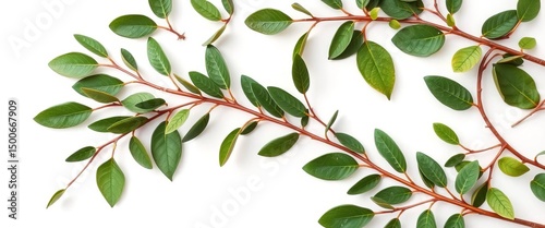 Rustic green leafy branch banner on white backdrop, flat lay , element, vibrant
