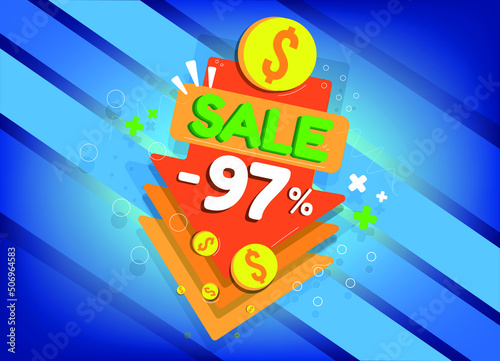 Sale discount, tags and arrow icons for promotion, ninety-seven percent off, -97%