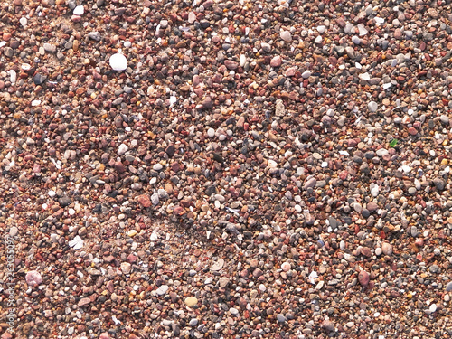 Sand and gravel on a seashore as nature background.