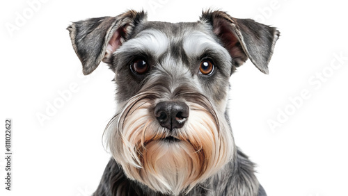 "Schnauzer with Expressive Eyes": A Schnauzer with expressive eyes photographed against a white backdrop, conveying intelligence and charm.