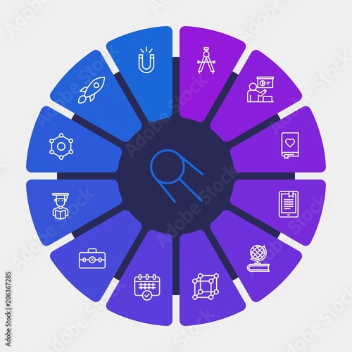 science, education Infographic Circle outline Icons Set. Contains such Icons as earth, coach, people, success, school, abstract, sky, spaceship, tutor and more. Fully Editable. Pixel Perfect