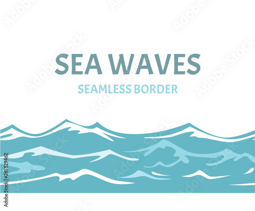 Sea waves seamless border. Vector illustration of blue water in cartoon flat simple style.