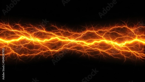 Seamless orange plasma lightning silhouette on black background