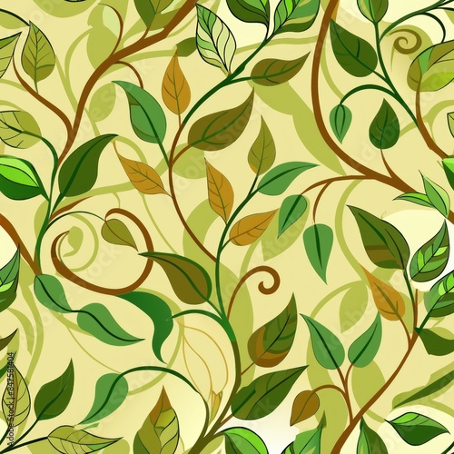 Seamless pattern of curving vines and leaves with organic shapes, Generative AI