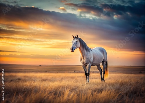 Serene Minimalist Horse in Open Field A Peaceful Landscape Photography Capture
