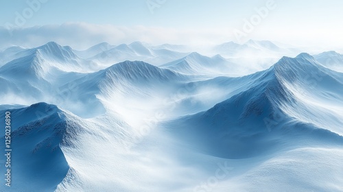Serene Snow-Covered Mountain Landscape with Soft Light and Gentle Clouds Above