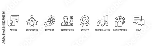 Service banner web icon vector illustration concept for customer and technical support with icon of advice, experience, support, competence, quality, performance, satisfaction, help, and call center