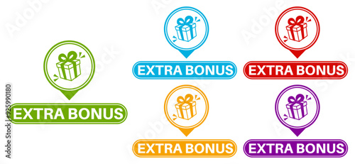 set Extra bonus label icon. free gift box icon template sticker design vector illustration