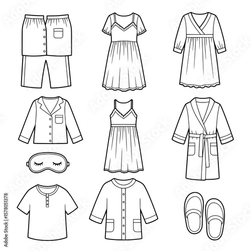 Set of casual and sleepwear clothing with slippers and sleep mask
