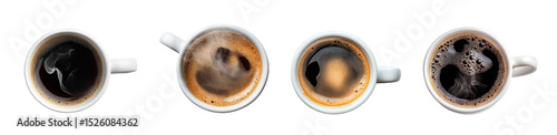 set of cups of coffee with steam, in different stages of cooling. isolated on transparent background