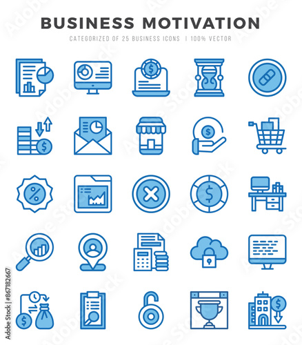 Set of Two Color Business Motivation Icons. Two Color art icon. Vector illustration