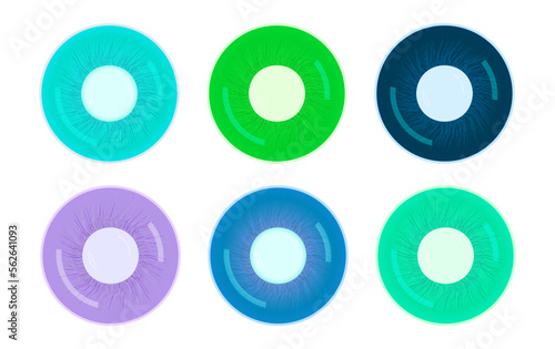 set of vector illustrations colored contact lenses isolated on white background