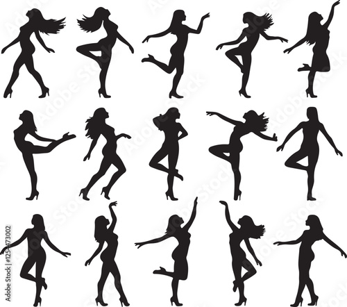 Set of vector silhouettes of sexy pinup girls in dance shoes