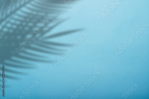 Shadow from palm leaves on a background of blue wall. Blue background, cardboard. Abstract image