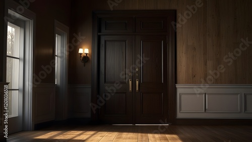 Shadowed Entry Mysterious Double Doors with Dramatic Lighting V4