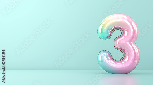 shiny gradient number 3 in pastel colors against soft mint background, creating playful and modern aesthetic. Perfect for celebrations or design projects
