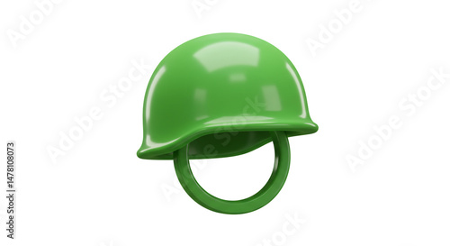 Shiny green army helmet 3D render isolated on white background perfect for military games or toy
