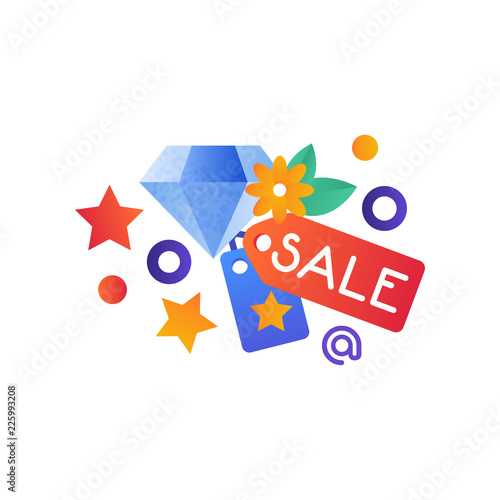 Shopping symbols, jewelry sale, internet shopping, e-commerce concept vector Illustration on a white background