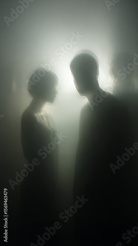 silhouette figures backlit mysterious shadows atmospheric foggy moody dark