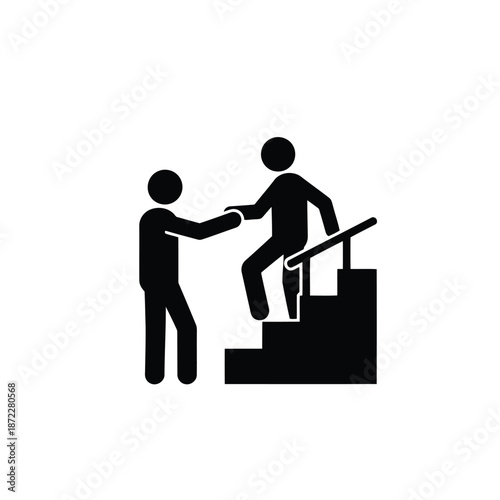 Silhouette Icon of a Person Helping Another Up Stairs Representing Mentorship and Support