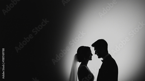 Silhouette of bride and groom sharing intimate moment together