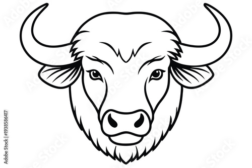 simple bison head silhouette line art vector illustration with a white background
