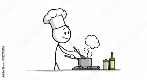 Simple Stick Figure Chef Cooking Delicious Food Illustration