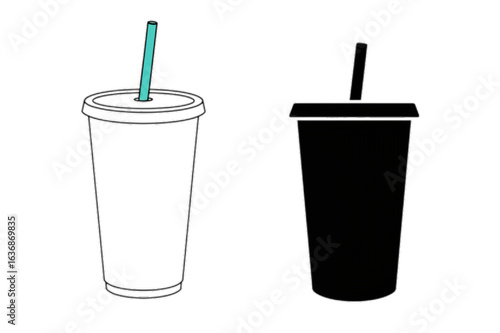 Sleek cup designs with straws, one outlined, one solid black, perfect for modern branding.