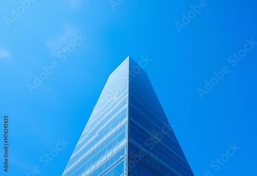 Sleek glass skyscraper ascends against a vibrant blue sky, head office, investment