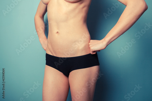 Slender young woman in black underwear