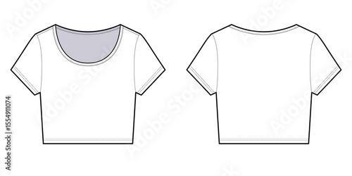 Slim Fit Crop T-shirt with Crew Neckline - Front and Back View- Flat Vector Illustration- CAD Mock-up