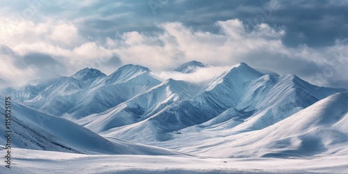 Snow covered Caucasus mountains showcasing breathtaking beauty, where majestic peaks rise under a blanket of snow. Explore the serene landscape of snow covered mountains in this stunning imagery.