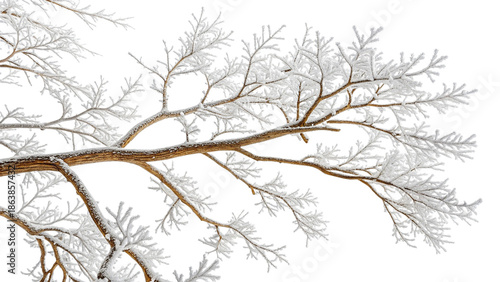 Snow Covered Tree Branch with Frosted Leaves Extending Outward winter nature