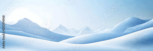 Snow-covered mountains create a serene winter landscape under a bright blue sky in mid-afternoon light