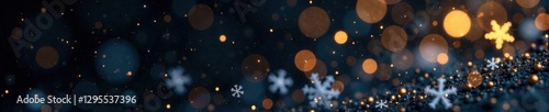 Snowflakes with gold dust falling on a dark isolated background, night sky, isolated, frosted