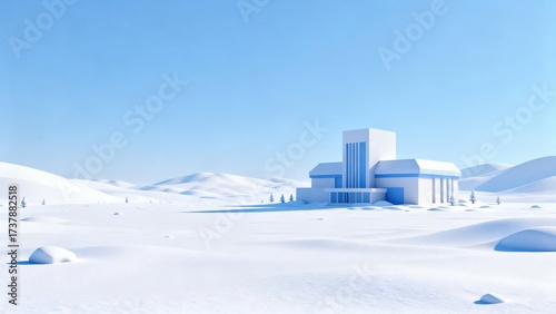 Snowy building in winter landscape