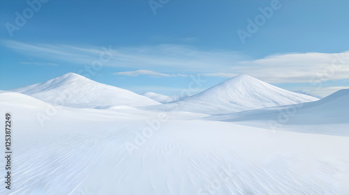 Snowy mountain range under a clear sky, winter landscape, serene background