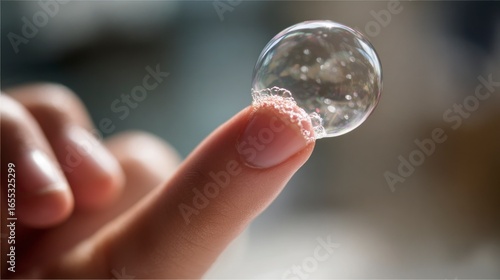 Soap bubble on finger