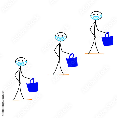 Social distancing, people in medical masks keep a distance in the queue, prevention of the spread of the COVID-19 coronavirus outbreak