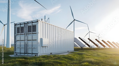 Solar Power Plants and Wind Turbines in Refreshing Nature, Renewable Energy: Solar Panels and Wind Turbines in Natural Landscape, Eco-Friendly Energy Sources: Solar and Wind Power in Refreshing Nature